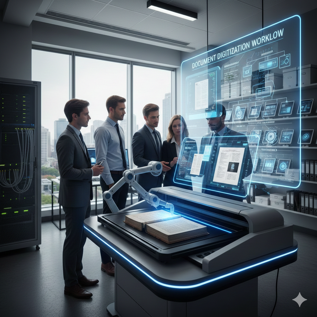 Our process includes secure collection, systematic indexing, advanced scanning, and organized digital storage—allowing you to access information quickly and efficiently. By digitizing your documents, you reduce physical storage costs, minimize risks, and improve data management across your organization.